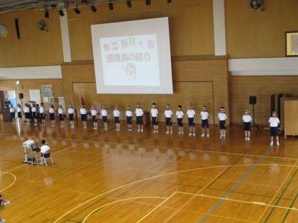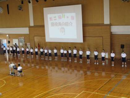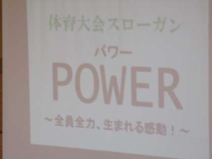 団役員の紹介の後、実行委員から今年度の体育大会スローガンが発表されました。