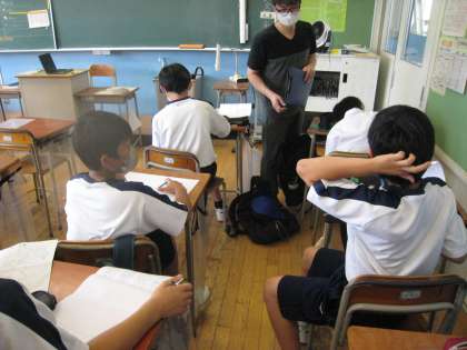 上:美術「みんなで課題ポスターの下描きをしよう!!」