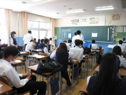 8月29日(月) 3学年の学活の様子です。 上:3−1 中:3−2 下:3−3