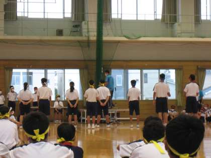 あいにくの雨模様で体育館内での活動となりましたが、開閉会式や競技における関係者の動きを確認することができました。