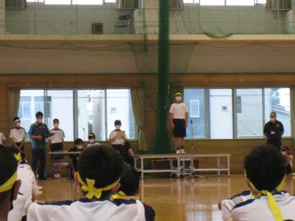 今日、体育大会の予行練習が体育館で行われました。