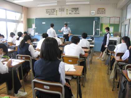 9月7日(水) 2学年の授業の様子です。 上:2−1英語 中:2−2美術 下:2−3体育
