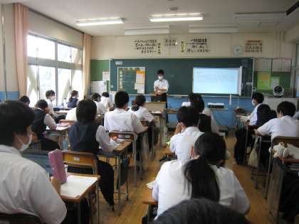 9月9日(金) 2学年 社会に学ぶ「14歳の挑戦」クラス発表 公開日 2022/09/09 更新日 2022/09/09 2学年 9月9日(金) 2学年では、社会に学ぶ「14歳の挑戦」のクラス発表がありました。生徒は、自らの経験から学んだことや今後に活かしたいことを発表しました。 来週、再来週にかけてクラス全員が発表する予定です。