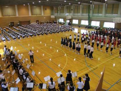 9月14日(水) 壮行会 その1 公開日 2022/09/14 更新日 2022/09/14 学校行事 9月14日(水) 壮行会 その1 今週末に開催される富山市中学校新人大会に向け壮行会を行いました。 整然と整列し、十分な間隔をとった上で、久しぶりの吹奏楽部の生演奏に乗せて、選手達が颯爽と入場しました。