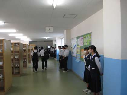 9月14日(水)令和4年度後期生徒会役員選挙のための選挙運動開始 公開日 2022/09/14 更新日 2022/09/14 生徒会 今朝から立候補者の選挙運動が始まりました。玄関で生徒に声を掛けながら立候補の意欲を伝えていました。毎朝選挙運動を行っていきます。