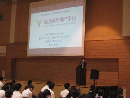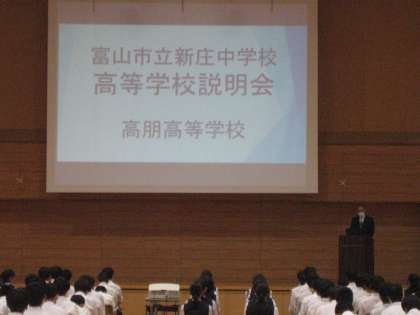 9月27日(火) 高等学校等説明会 その1 公開日 2022/09/27 更新日 2022/09/27 3学年 9月27日(火) 5、6限 3年生とその保護者を対象とした高等学校等説明会の様子です。 本日は私立5校と国立高専の担当者にご来校いただき、それぞれの学校の特色について話をしていただきました。 生徒たちは、真剣に自分の進路について考えている様子でした。 上:富山高等専門学校 中:高朋高等学校 下:龍谷富山高等学校