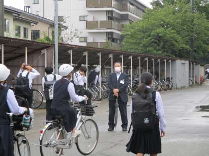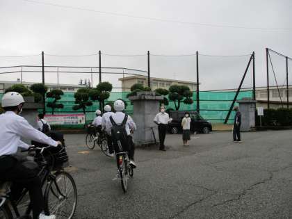 今朝降っていた雨も8時前には気にならない程度になり、生徒はひんやりした通学路を登校してきています。
