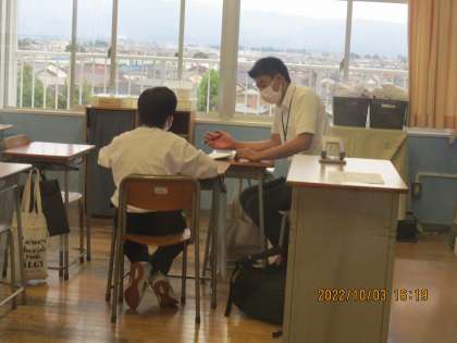 10月3日(月) 今日から教育相談が始まりました。 1学年の様子です。