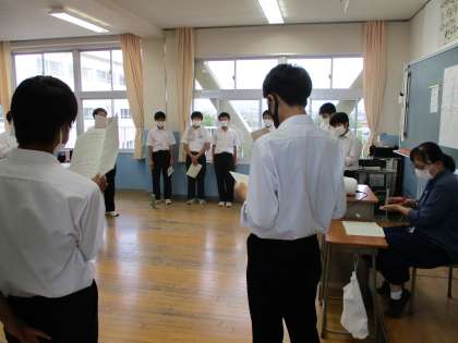 10月3日(月) 2年生の合唱練習の様子です。