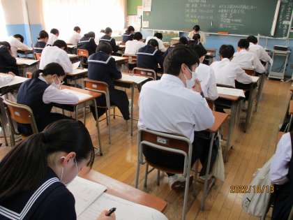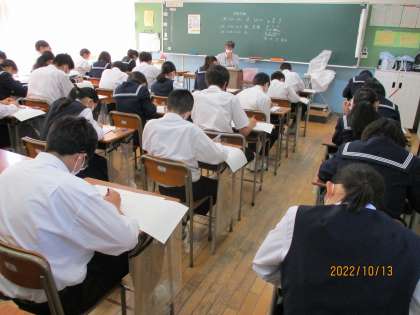 2年 中間評価1日目その1 公開日 2022/10/13 更新日 2022/10/13 2学年 10月13日(木) 1限 2年生の中間評価1日目の様子です。 英語の様子です。 上:2-1 中:2-2 下:2-3
