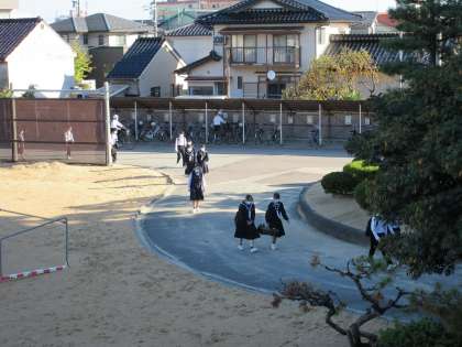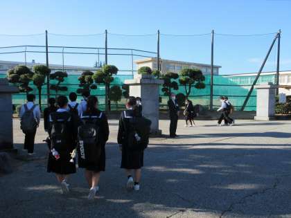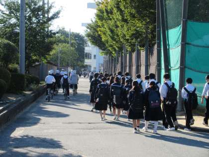 秋晴れの朝となり、空気は冷たいのですが、太陽の日差しがポカポカと登校する生徒達を暖めてくれています。