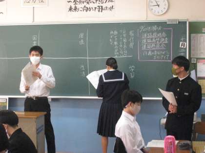 10月20日(木) 学級討議(後期生徒会活動計画)3学年その1 公開日 2022/10/20 更新日 2022/10/20 3学年 3学年の学級討議の様子です。 後期生徒会執行部及び各専門委員会の活動計画に対して各学級で質問や意見を出しました。 各学級から出た質問や意見は、11月4日の生徒総会で協議された後、承認される予定です。 新庄中学校をよくするために、活発な意見交換が行われました。 上:3−1 中:3−2 下:3−3