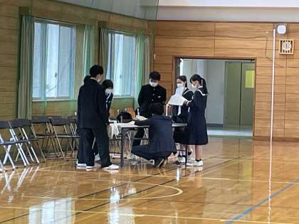10月22日(土) 学習発表会 8 (お昼の準備) 公開日 2022/10/22 更新日 2022/10/22 学校行事 午前中の合唱コンクールでは、各クラス素敵な発表をしてくれました。 午後からのステージ発表に向け、昼の時間にも準備をしてくれている生徒たちがいます。 各係生徒が、目立たないところでも一生懸命に行事を支えてくれています。 みんな、ありがとう!