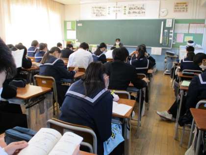 10月26日(水) 2学年学活の様子 公開日 2022/10/26 更新日 2022/10/26 2学年 10月26日(水) 2学年では、宿泊学習のしおりの読み合わせが行われ、ルールや服装、持ち物等について担任から話がありました。生徒は目を輝かせながらしおりを読んでいました。