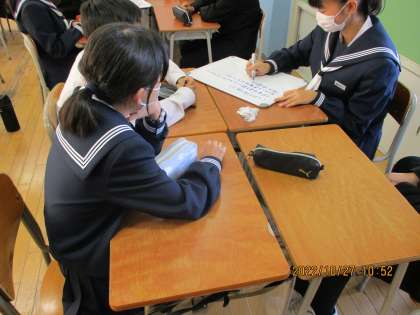 10月27日(木) 3限 上:1-1 学活 中:1-2 数学 下:1-3 国語