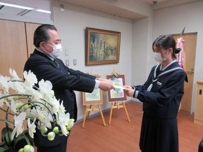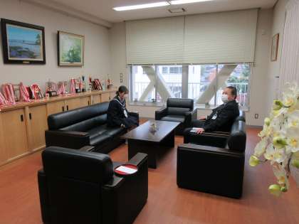 校長室にて、丸山校長先生から励ましの言葉をいただきました。
