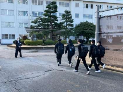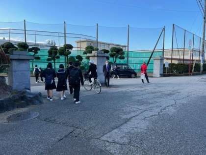 11月2日(水) 登校風景 公開日 2022/11/02 更新日 2022/11/02 そ の 他 11月2日(水) 朝の登校風景です。 早朝の雨が道路を濡らしていましたが、登校時には止み、暖かな日差しが注いでいました。 昨日から冬時間となりましたが、生徒達はスムーズに移行していました。 今日は放課後に、11月4日(金)の生徒総会に向け、リハーサルが実施される予定です。 着々と新体制への準備が進んでいます。 さあ「笑って おはよう!」で今日もスタートです!!