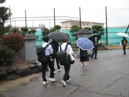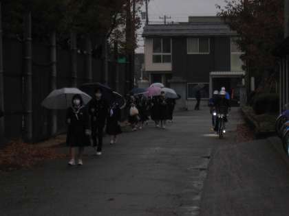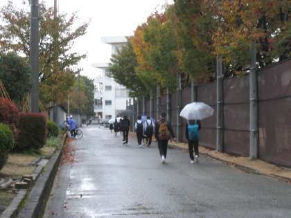 11月4日(金)登校風景 公開日 2022/11/04 更新日 2022/11/04 そ の 他 11月4日(金)朝の登校風景です。 薄暗い雲がかかり、雨交じりの朝になりました。通学路には街路樹の落ち葉が所々に見られ生徒たちは踏みしめながら登校しています。 今日は午後に生徒総会が行われます。 さあ「笑って おはよう!」で今日もスタートです!
