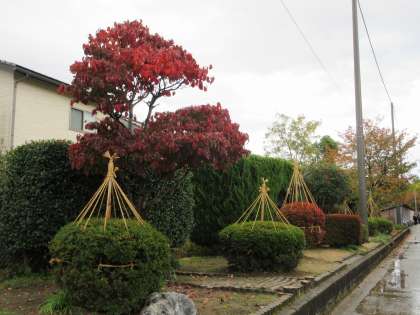 校庭でも紅葉と冬支度が進み、秋と冬の風景が同居しています。