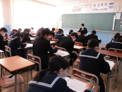 11月9日(水) 1学年 中教研学力調査1 公開日 2022/11/09 更新日 2022/11/09 1学年 11月9日(水) 1限 中教研学力調査の2日目です。 1学年は社会のテストを受けています。 上:1−1 中:1−2 下:1−3