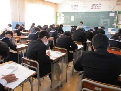 11月9日(水) 1限 3学年は社会のテストを受けています。 上:3−1 中:3−2 下:3−3