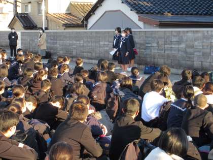 大阪屋ショップさんのご協力を得て、大阪屋ショップ駐車場に集合し、出発式を行いました。