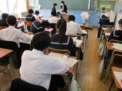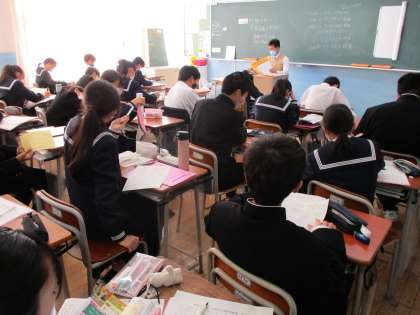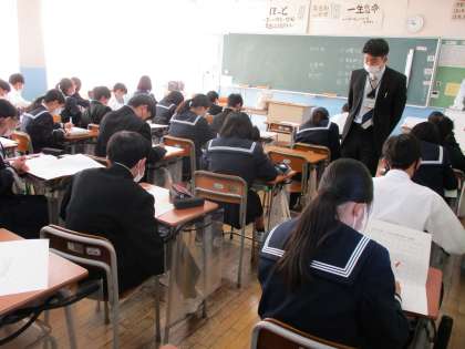 総合の様子です。期末評価の範囲表が配られ、勉強の計画を進めています。