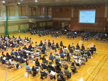 体育館にて3年生を対象とした進路説明会を実施しました。