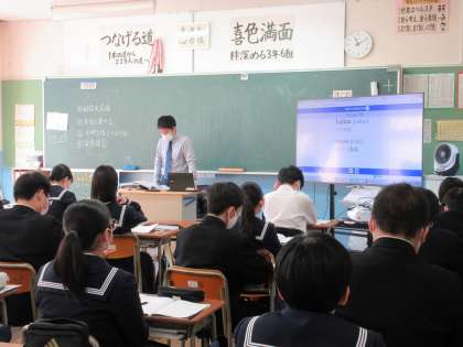 11月11日(金) 3年生 授業風景 公開日 2022/11/11 更新日 2022/11/11 3学年 11月11日(金) 3年生 授業風景です。 保健体育では、換気の重要性について話をしていました。 英語では、ICTを活用して単語練習をしていました。 国語では、和歌について学んでいます。