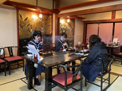 6組の食事風景です。女子もお代わりをしてもりもり食べました!