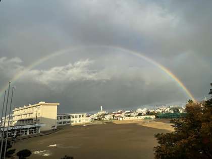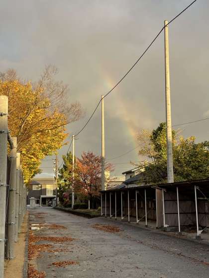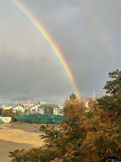 午前7時、小雨が降っていましたが、いつの間にかきれいな虹がでていました。