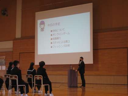 ネットモラルや犯罪に関する事例を、動画等を用いながら分かりやすく説明していただき、1年生は真剣な眼差しで話を聞いておりました。