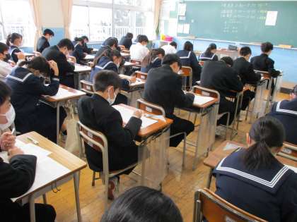 1年 期末評価1日目その1 公開日 2022/11/22 更新日 2022/11/22 1学年 11月22日(火)1限 今日から期末評価が始まりました。 1年生の英語の様子です。 上:1-1 中:1-2 下:1-3