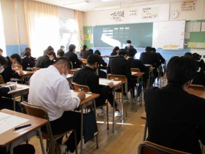 11月25日(金) 1限 理科のテストを受けています。 上:3−1 中:3−2 下:3−3
