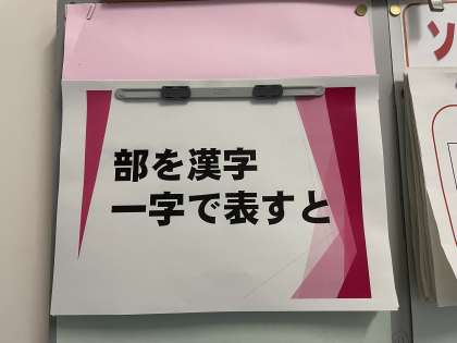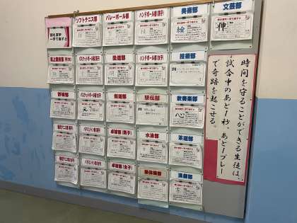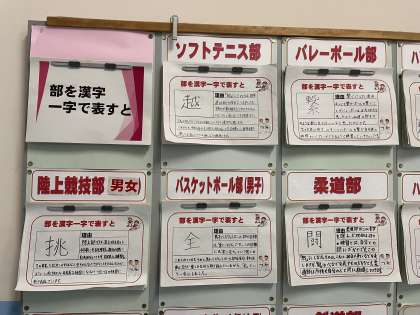 部活動ごとに掲示物「部活動を漢字一文字で表すと」を作成しました。