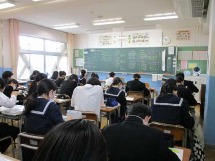 12月8日(木) 2学年の授業の様子です。 上:2−1数学 中:2−2保健 下:2−3美術