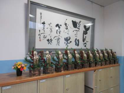 正面玄関には、昨日製作した門松が見事に並んでいます。