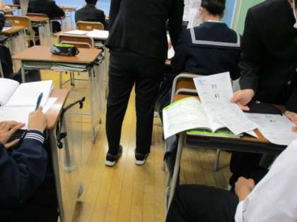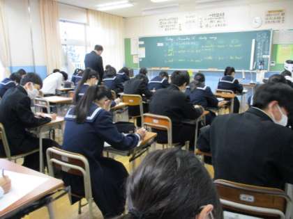 12月16日(金) 今日の2学年の授業風景です。 上:2−1英語 中:2−2英語 下:2−3体育
