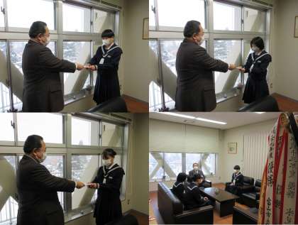 丸山校長からは激励の言葉とともに、後援会とPTAからの激励金も手渡しました。