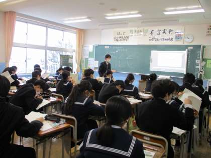 1学年授業の様子その1 公開日 2022/12/19 更新日 2022/12/19 1学年 12月19日(月)3限 今日は積雪があり、寒さも厳しい中生徒達は元気よく過ごしていました。 上:1−1 数学 中:1−2 社会 下:1−3 体育