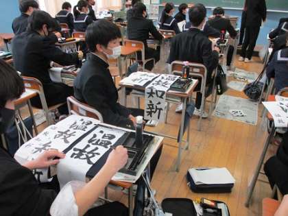 12月21日(水)5限 3年生では、「温故知新」を書いています。 上:3-1 中:3-2 下:3-3