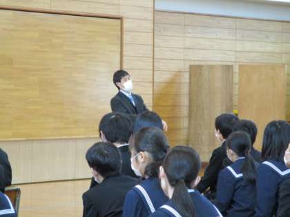 2学年集会 公開日 2022/12/22 更新日 2022/12/22 2学年 12月22日(木) 3限 2学年集会がありました。 2学期を通して、各学級代表がクラスの様子を振り返り、また学年代表が学年全体の様子を振り返り、発表しました。 その後先生から学習や生活について、3年生につながる3学期にいいスタートがきれるようにという話がありました。