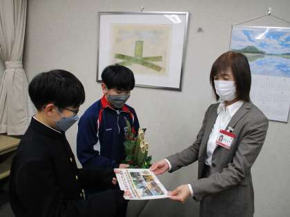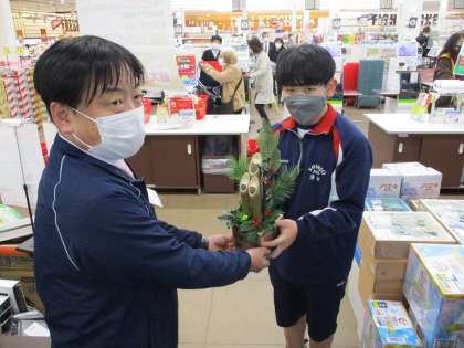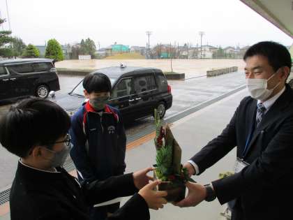 門松贈呈その3 公開日 2022/12/22 更新日 2022/12/22 そ の 他 12月22日(木) 昨日に引き続き、本日も地域の各施設に門松を贈呈してきました。 普段なかなか感謝の気持ちを伝える場面がないため、今回心を込めて「ありがとうございました」と伝えてきました。 上:北陸銀行 新庄支店 中:大阪屋 新庄店 下:新庄小学校
