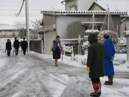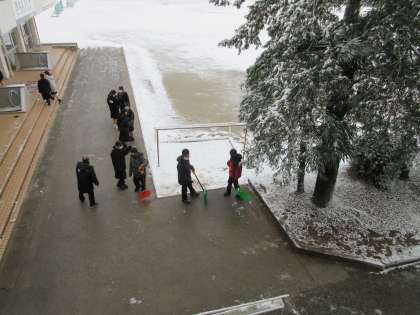 少し積もった雪も、除雪当番の生徒達がきれいにしてくれ、生徒玄関前はすっきりしていました。