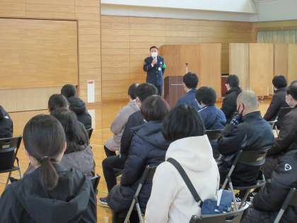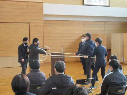 本日の研修会では、富山県中央警察署から3名の警察官を講師に招き、不審者対応について研修を深めました。