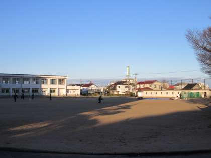 用務員さんが氷が張った水たまりに凍結防止剤をこまめにまいてくれていました。