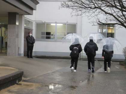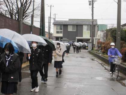 1月16日(月) 朝の登校風景です。