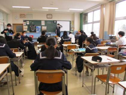 1月18日(水) 2学年授業の様子です。 上:2−1英語 中:2−2美術 下:2−3体育