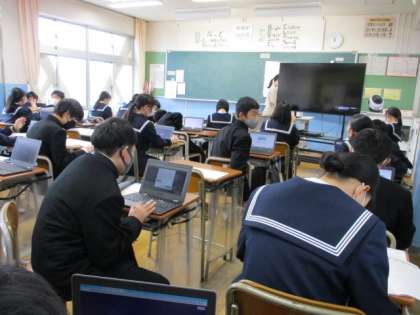 1月18日(水) 1学年の授業の様子です。 上:1−1音楽 中:1−2国語 下:1−3英語