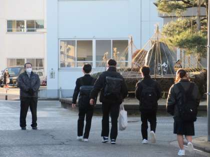 徒歩通学生も、路面の凍結で足下に気をつけながら登校する姿が見られました。